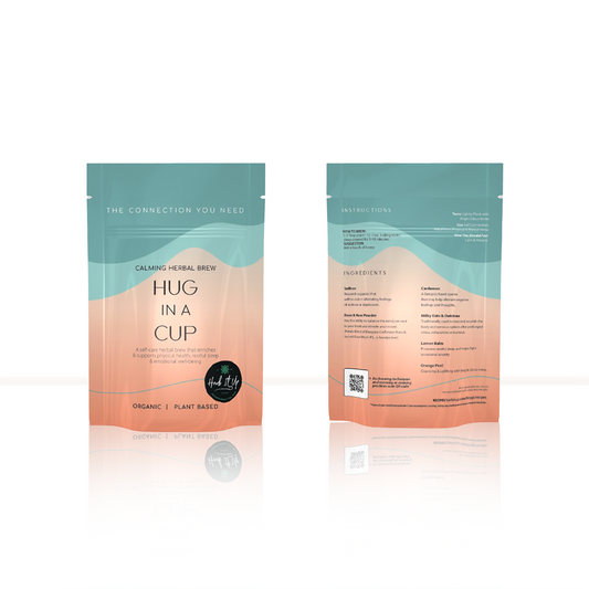 ‘Hug in a Cup’ is an emotional reset. A calming herbal blend that enriches the body with six powerful ingredients known to help minimize prolonged stress and balance emotional wellbeing. The perfect accompaniment for journaling, yoga, meditation, or any desired self-care ritual.